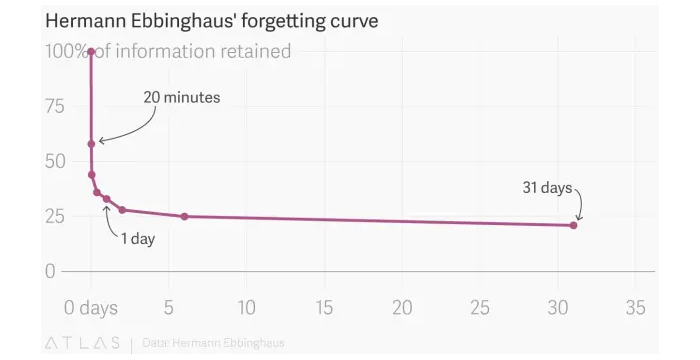 - We promptly forget what we learn within the first hour.